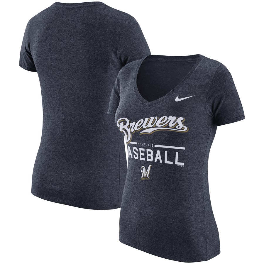 Wholesale Cheap Milwaukee Brewers Nike Women's Practice 1.7 Tri-Blend V-Neck T-Shirt Heathered Navy